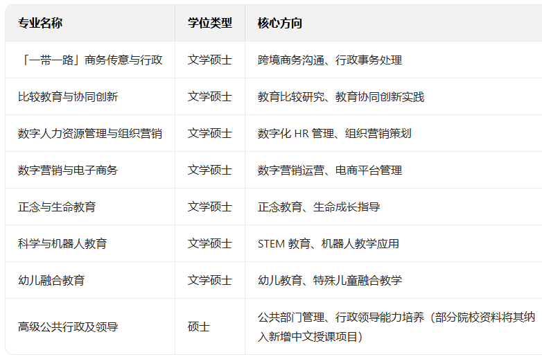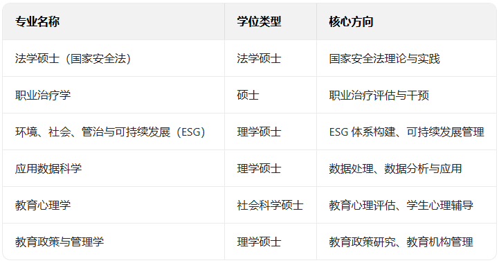 ✅ 新增专业首年招生,门槛相对友好,尤其是中文授课和免语言专业,适合双非、英语基础薄弱或跨专业申请者。